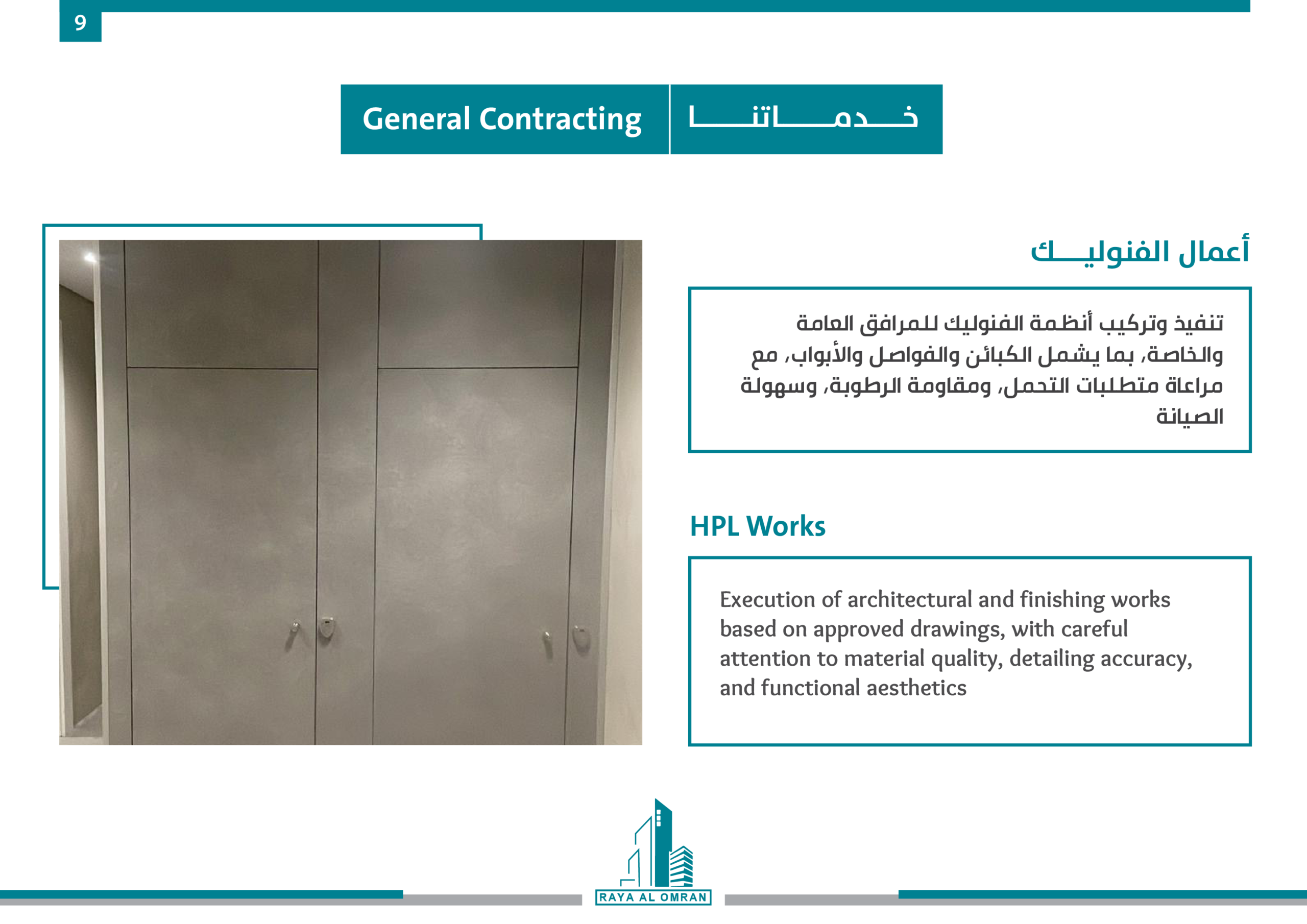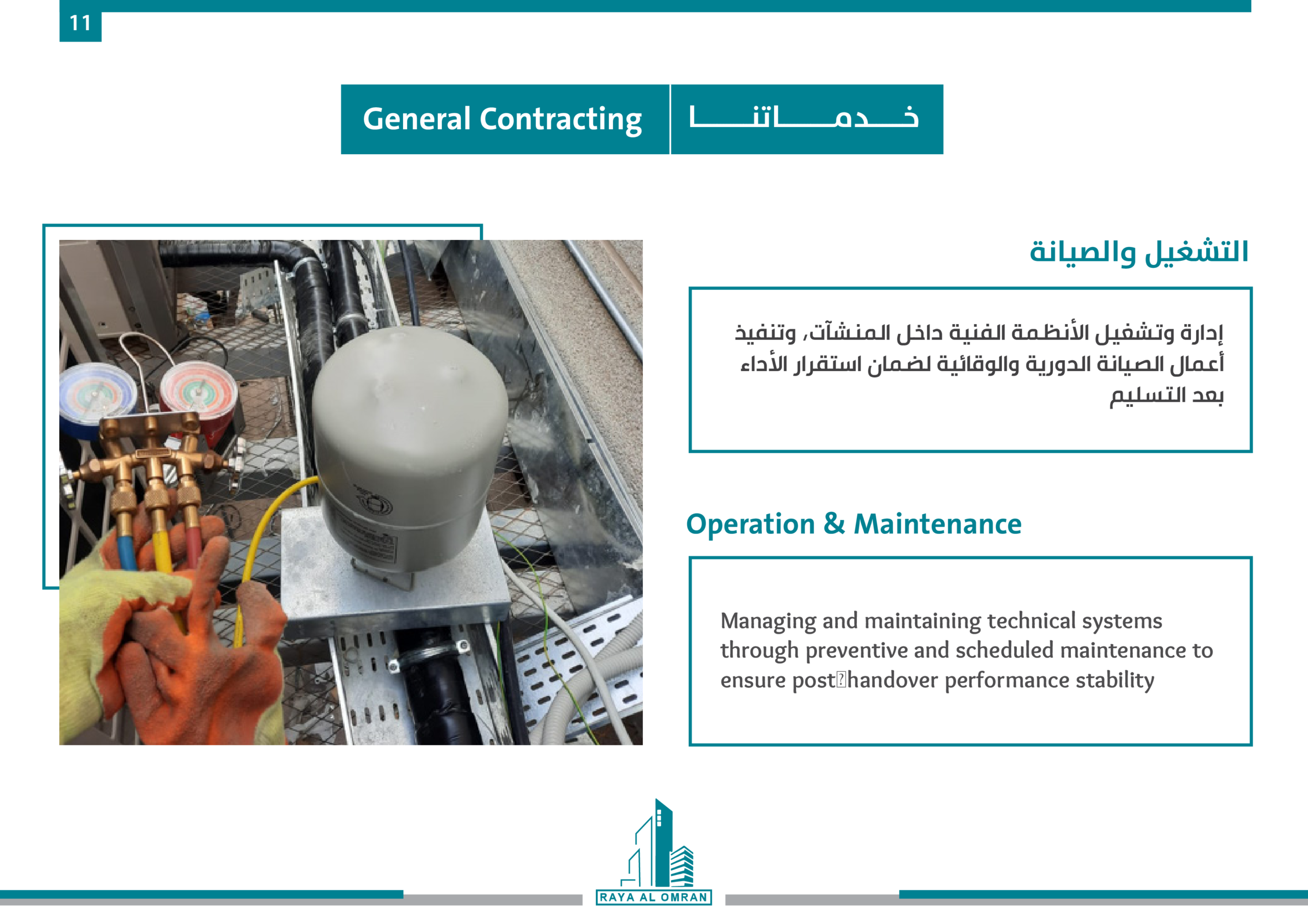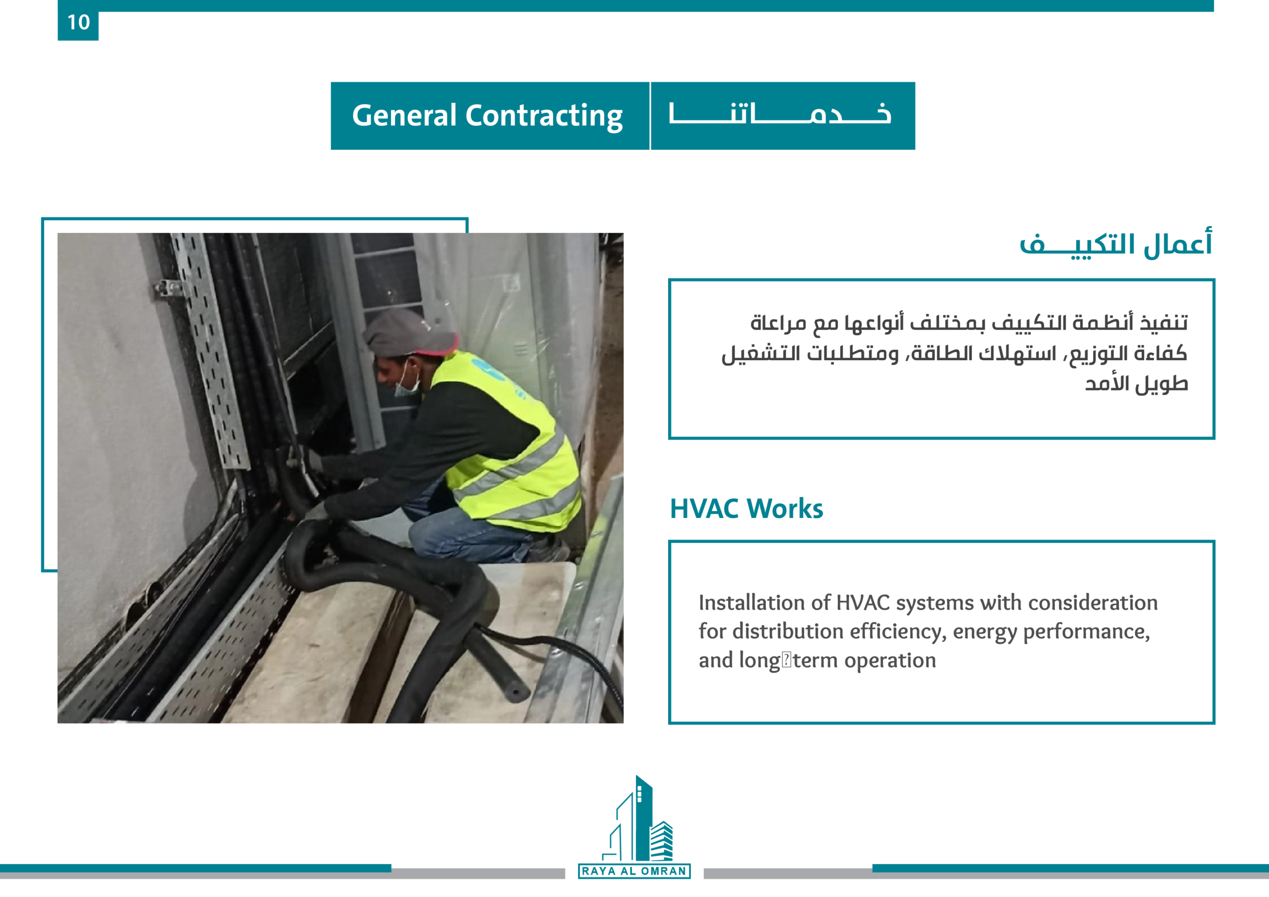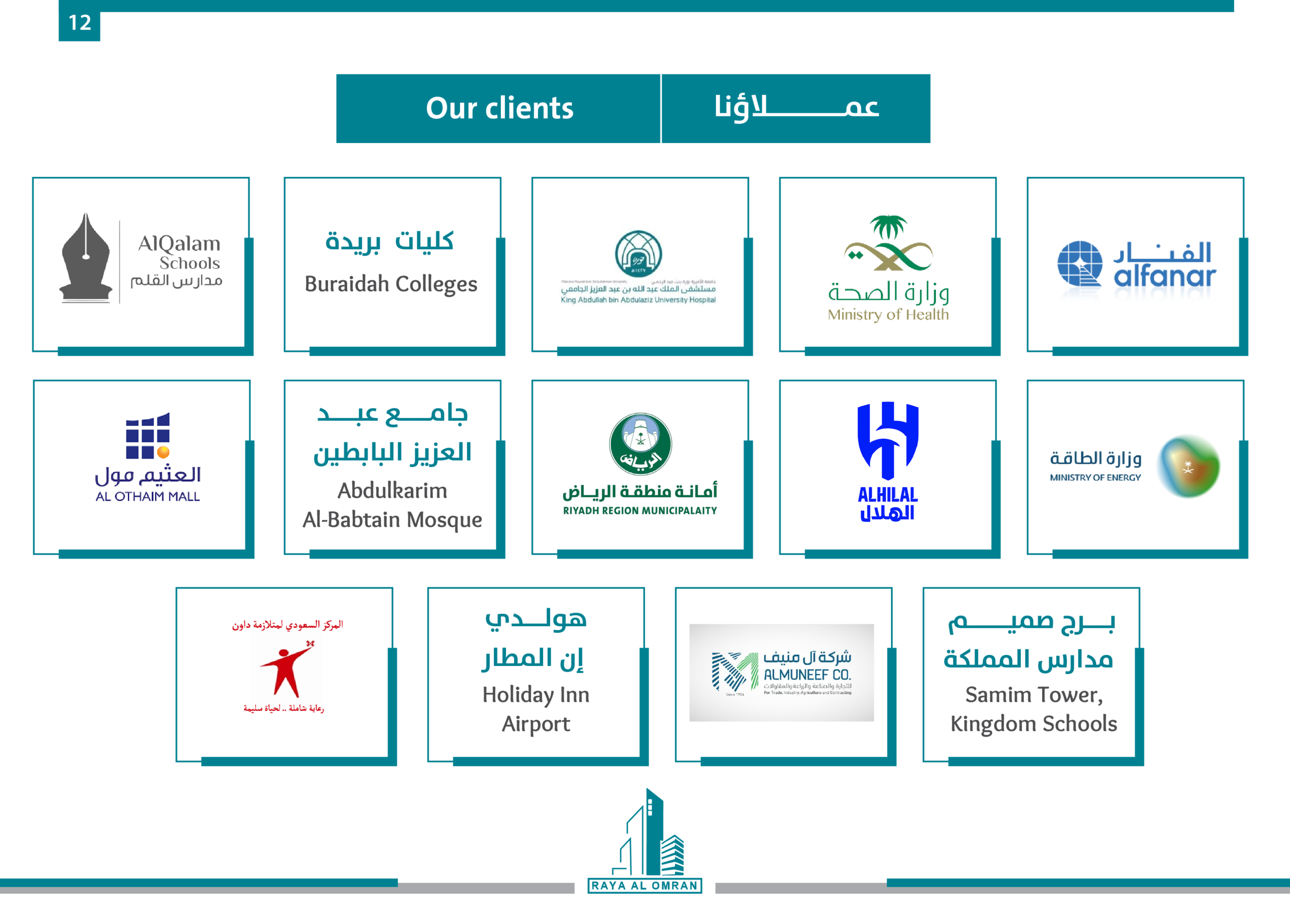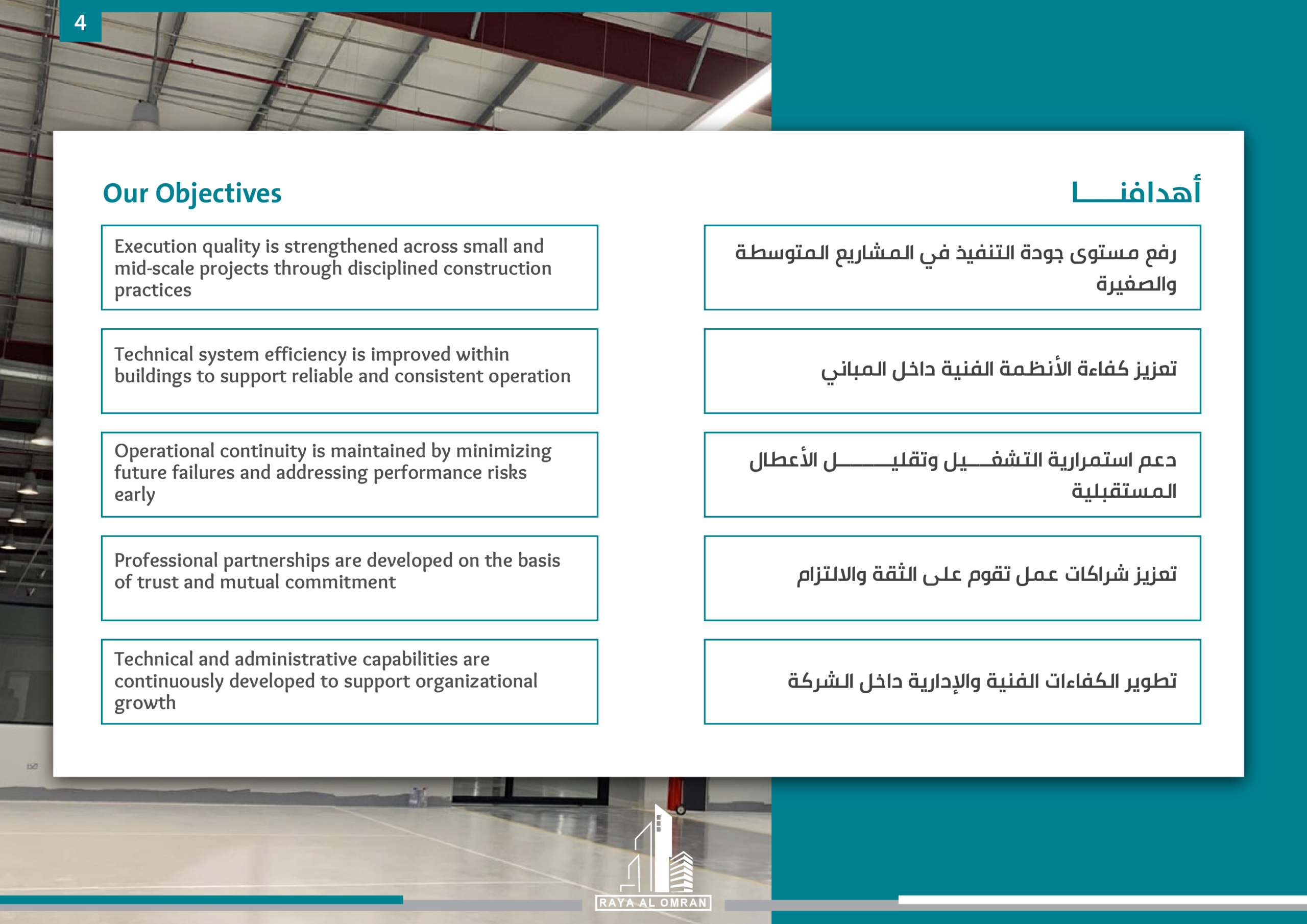 تم تصميم البروفايل بأسلوب عصري يعتمد على خطوط نظيفة وتكوين هندسي متوازن يعكس طبيعة القطاع الإنشائي. استخدام الألوان المؤسسية مع الصور المعمارية يعزز الإحساس بالقوة والثبات، بينما يبرز تنسيق المحتوى بشكل منظم رؤية الشركة وخدماتها ومشروعاتها. التصميم يقدّم انطباعًا احترافيًا يعكس الثقة والالتزام والجودة في التنفيذ.